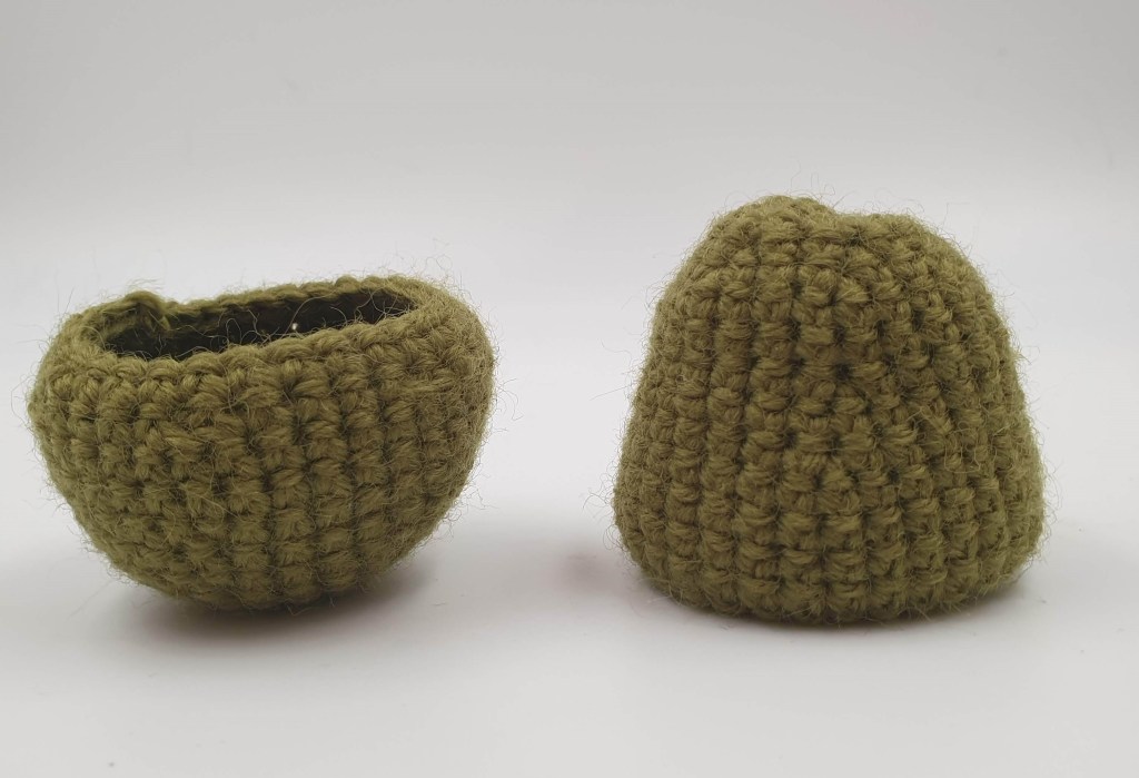 Now that all the pieces have been created, the overall egg cosy can be constructed.